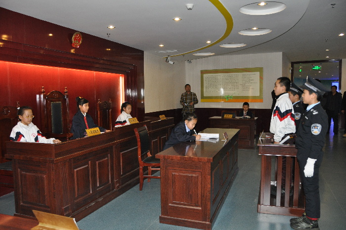 随后,在活动中心二楼的“正义大厅”,组织学生扮演法官、公诉人、辩护人、被告人等角色模拟法院开庭现场,整个庭审规范有序,使青少年在直观地感受到司法的权威的同时,学习到了解了相关的法律知识,直观地感受到了司法的威严,受到了良好地体验式普法教育。